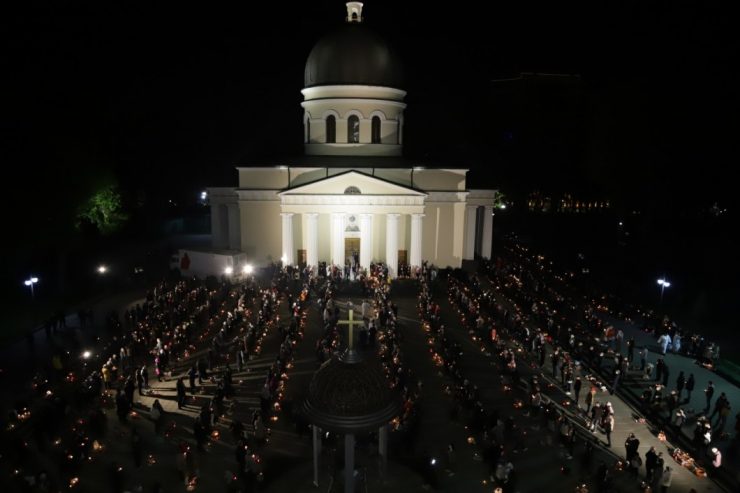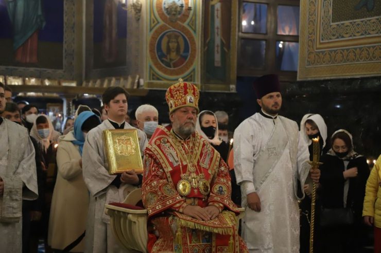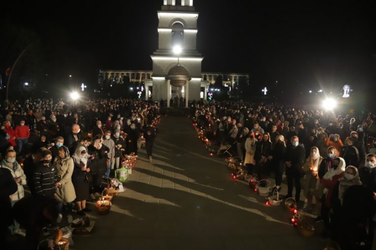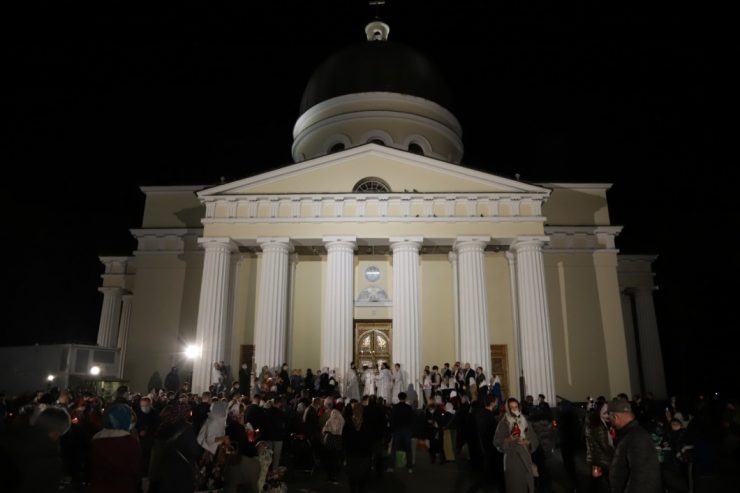 În noaptea Învierii, Înaltpreasfințitul Vladimir, Mitropolit al Chișinăului și al Întregii Moldove a săvârșit Utrenia Învierii și Sfânta Liturghie la Catedrala Mitropolitană.
