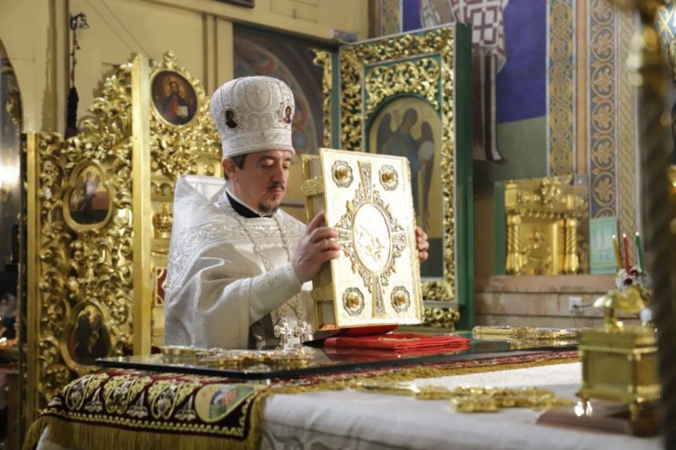 În continuarea Sfintei Liturghii, Mitropolitul Vladimir a citit Evanghelia în limba latină, după care slujitorii au dat citire pe rând pericopei Evanghelice în limbile slavonă, franceză, engleză, portugheză și greacă.