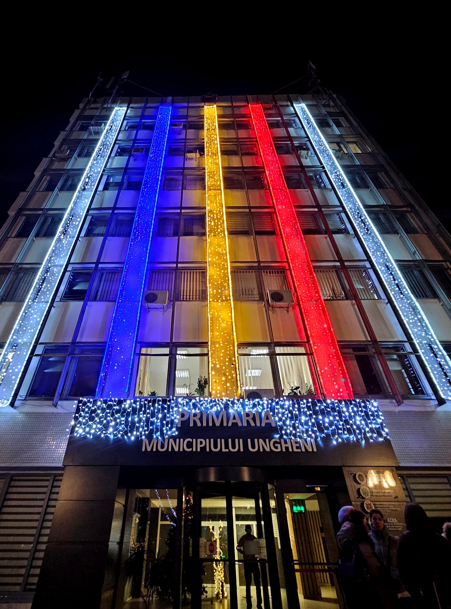 Și la Ungheni iluminatul festiv a fost pus în funcțiune pe 1 decembrie. Primăria orașului a publicat mai multe fotografii pe rețelele sociale. În același timp Primăria, strada centrală și Pavilionul Multifuncțional din Scuarul Înfrățirii au fost luminate în culorile tricolorului.