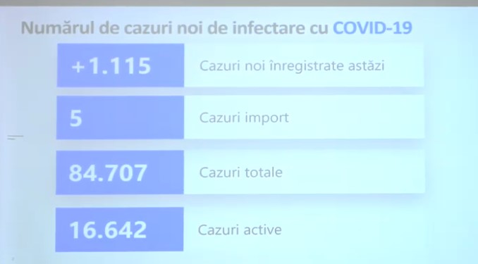 1 115 cazuri noi de infectare cu COVID-19 și 20 de decese, înregistrate în ultimele 24 de ore