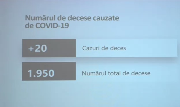 Tot în ultimele 24 de ore, douăzeci de persoane au fost răpuse de infecția cu COVID-19.