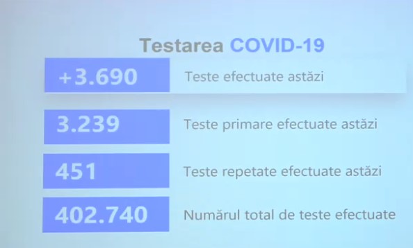 În total, în ultimele 24 de ore, au fost efectuate 3 690 de teste, dintre care 3 239 de teste primare și 451 – repetate.