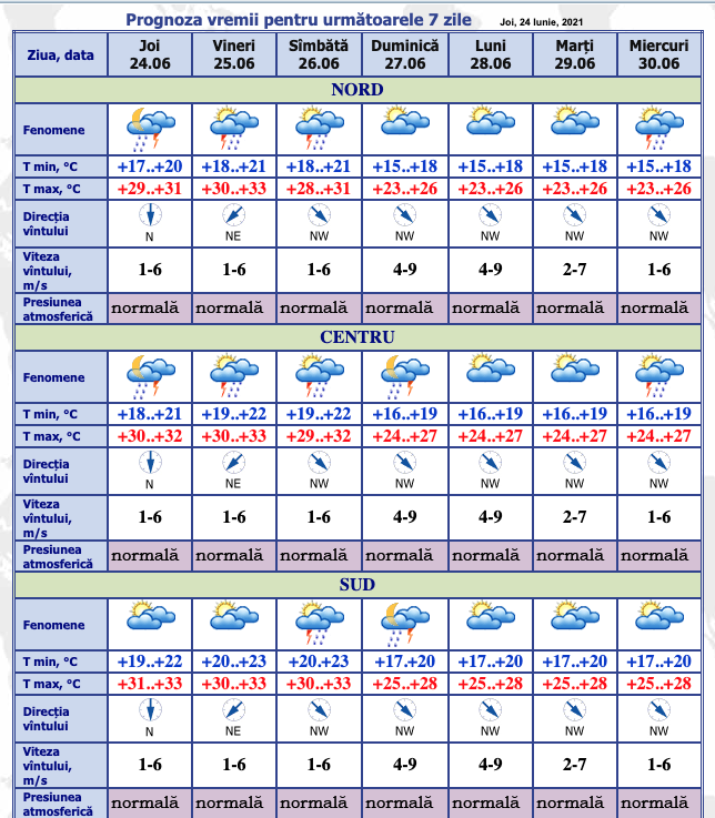 Prognoza vremii pentru următoarele zile.