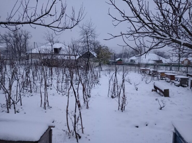 În Pepenii Noi, din Bălţi, conform pozelor postate de un internaut, stratul de zăpadă atinge câțiva centimetri.