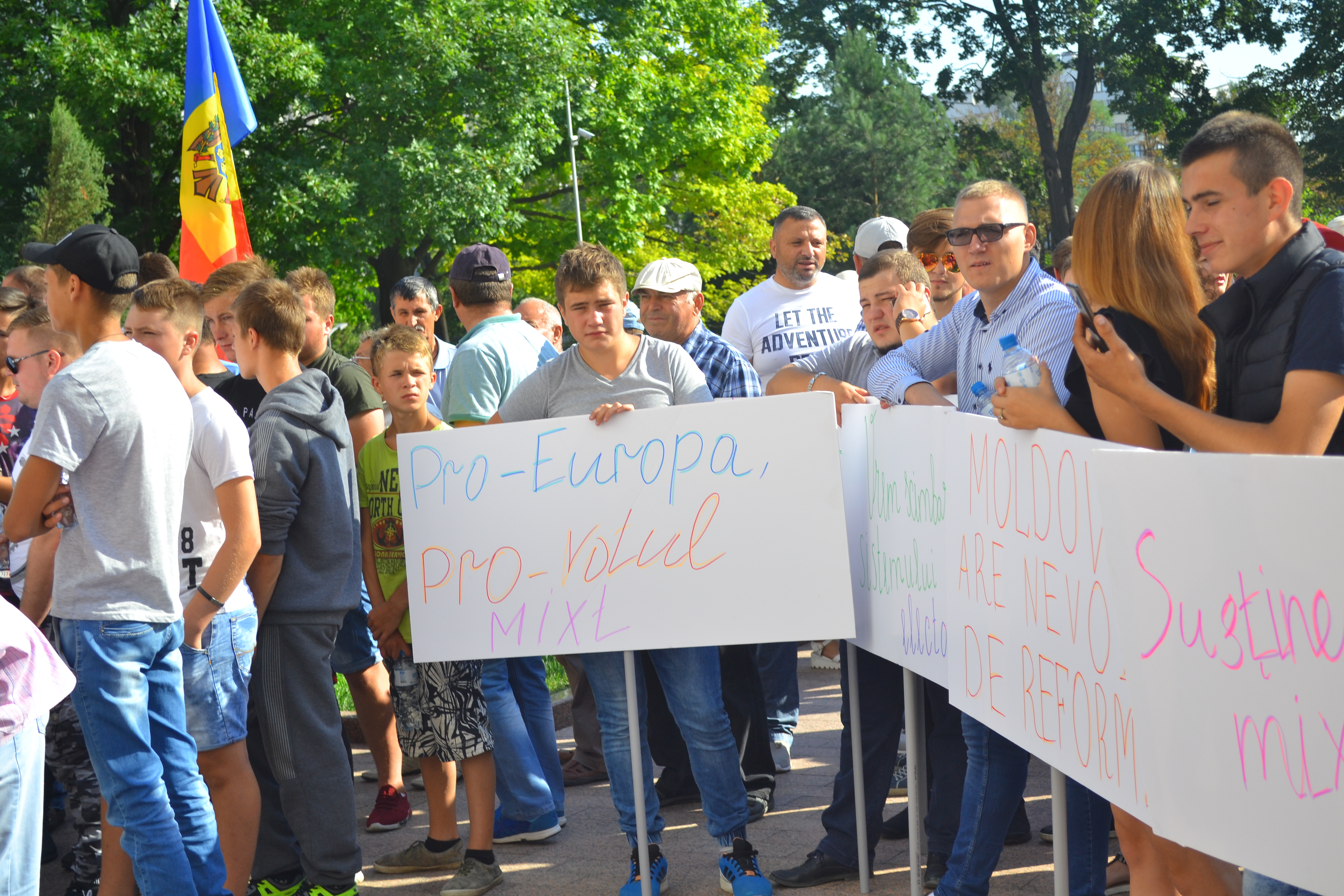 Astăzi, în perimetrul Parlamentului și-au manifestat poziția două tabere: opoziția extraparlamentară care a chemat cetățenii să protesteze împotriva schimbării sistemului electoral și adepții sistemului mixt.