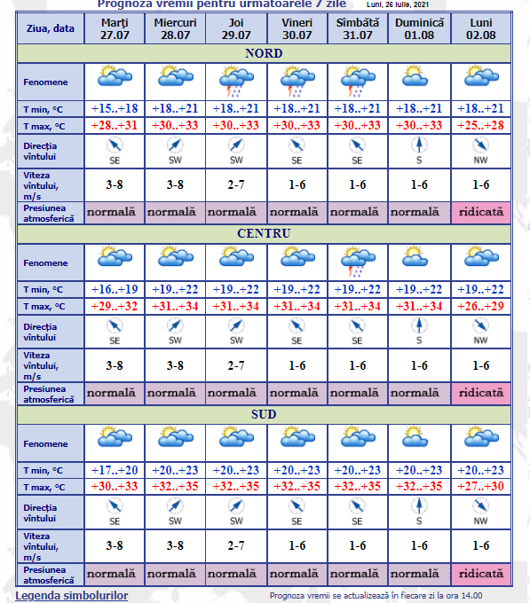 Prognoza meteo pentru următoarele 7 zile: