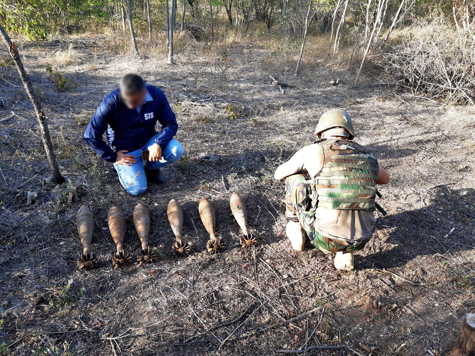 Șase bombe de aruncător de mine, calibru 120 mm, precum și o grenadă din timpul celui de-al Doilea Război Mondial au fost depistate într-o fâșie forestieră din proximitatea localității Mingir din raionul Hâncești, anunță SIS.