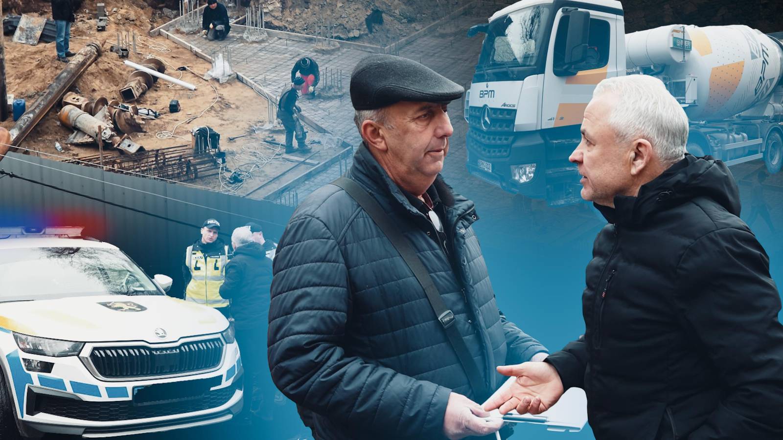 Dirigintele de șantier: Ce contează cine sunt eu? Întrebarea este de ce voi ați blocat drumul. Mașina (cu beton, n.r.) este a mea, eu am chemat-o.