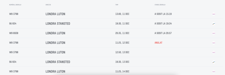 Zborurile planificate pentru luni, 12 decembrie, pe cursa Chișinău-Londra și Londra-Chișinău au fost anulate. Potrivit datelor publicate pe site-ul Aeroportului Internațional Chișinău, aeronava Wizz Air care ar fi trebuit să decoleze de la Aeroportul Luton, pentru a ajunge dimineață la Chișinău – a rămas la sol, fiind anulat și returul.