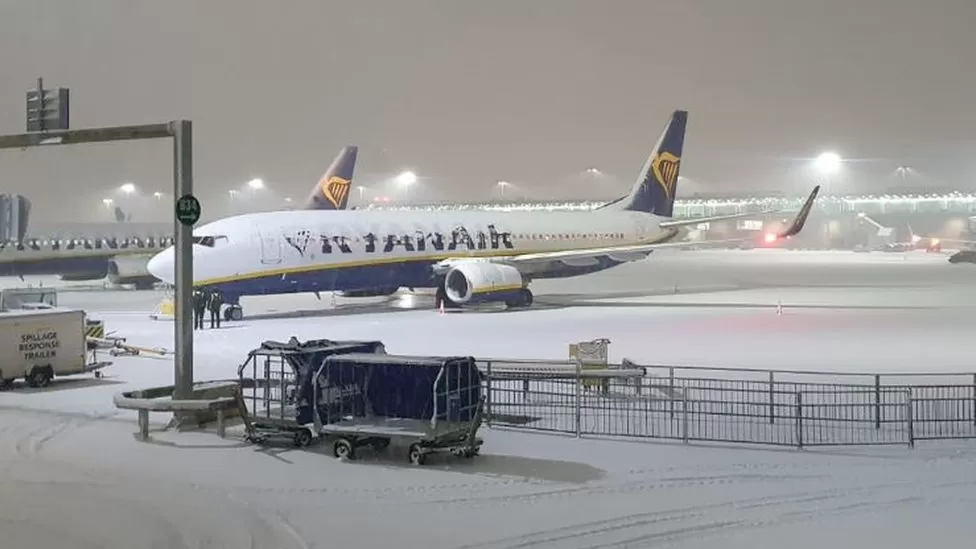 Duminică seara, Stansted a anunțat că singura sa pistă a fost închisă pentru a permite deszăpezirea din cauza condițiilor meteorologice, iar toate zborurile au fost suspendate.