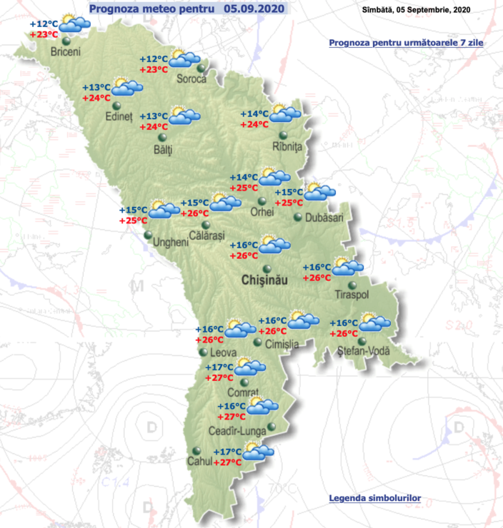 Vremea rămâne să fie mai răcoroasă, față de valorile caniculare de la începutul săptămânii, dar se va încălzi, promit meteorologii. Valorile termice vor varia de la 23-24 grade în Nord, până la 26-27 grade la Sud.