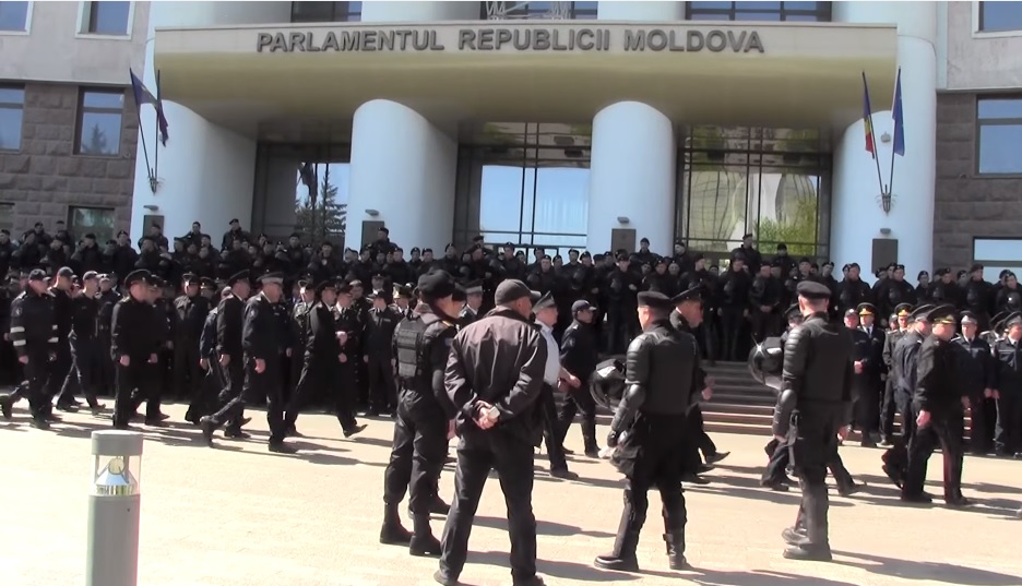 Pentru protestul din 24 aprilie din PMAN au fost mobilizate forțe impresionante de poliție la principalele instituții ale statului, Parlament și Guvern. În spatele instituției au fost surprinse zeci de autocare cu numere de prin raioane.
