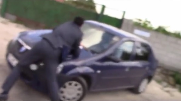 (VIDEO) Ofițer CNA în misiune, luat pe capota unui vameș