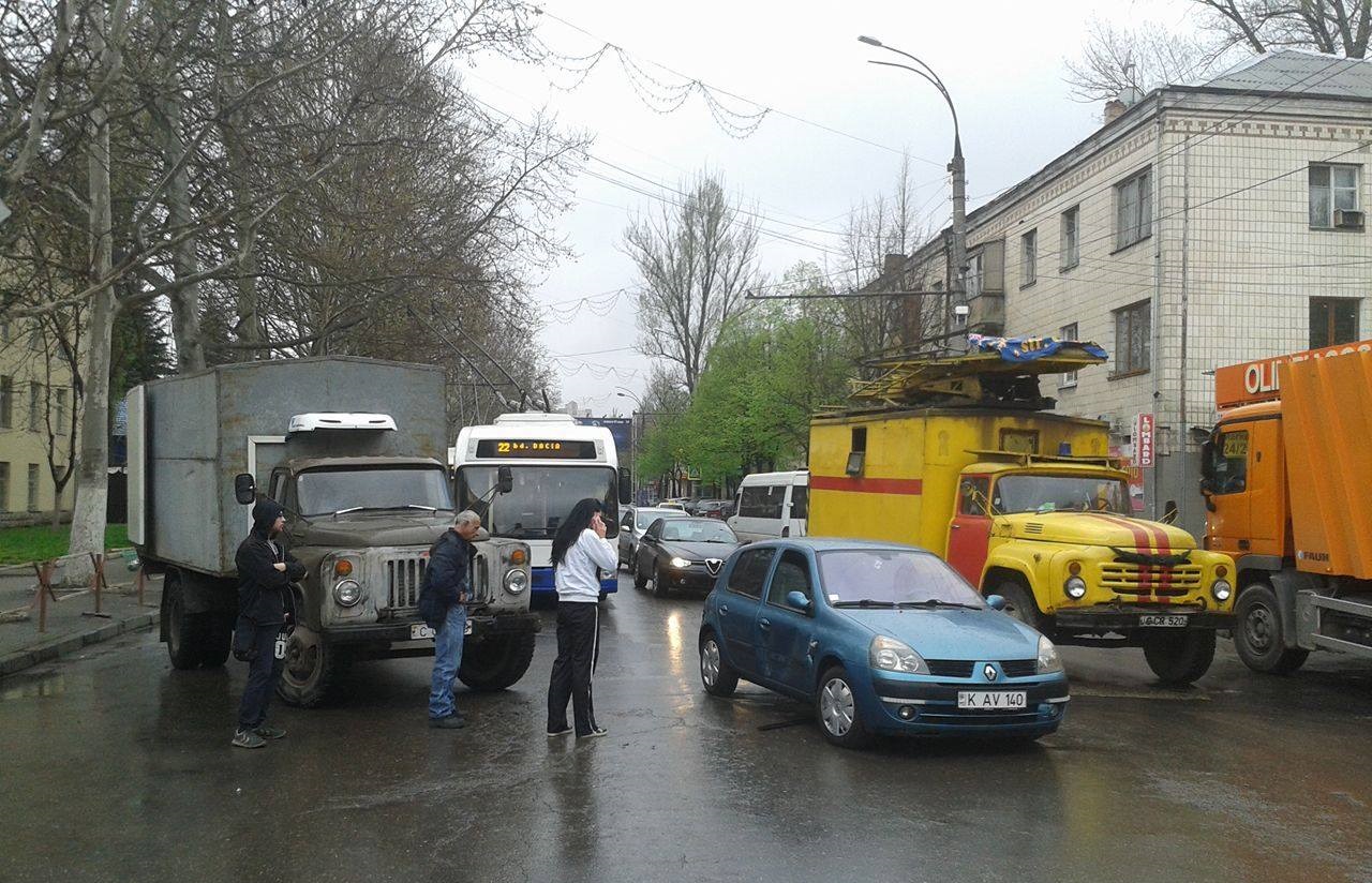 Zeci de troleibuze și microbuze au fost blocate în această dimineață în preajma Universității pedagogice ”Ion Creangă” din cauza unui accident rutier.
