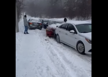 VIDEO Accident în lanț pe o stradă din capitală: un automobil a alunecat în pantă, peste alte vehicule Social